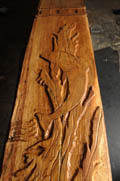 Scenes from the old Broadoak colliery at Loughor were designed by our artists with the help of Casllwchwr and Tre-Uchaf pupils and carved into the reclaimed timber from Swansea Docks. |